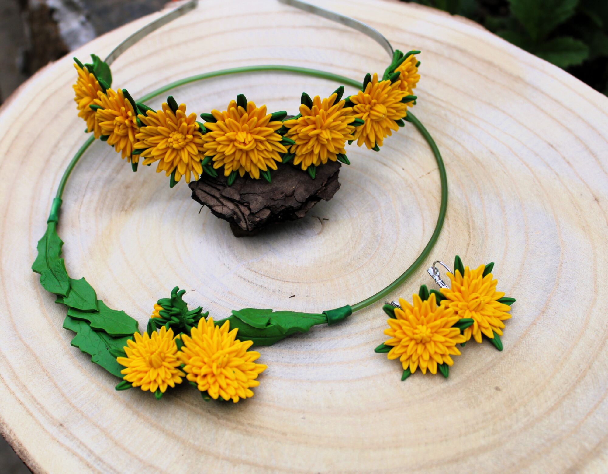 Květy ručně modelované z polymerové hmoty. Mnoho kombinací na výběr. Náhrdelník může být na lanku, bižuterní obruči, stužce, šňůrce, řetízku, zapínání náušnic je z chirurgické oceli, vhodné i pro alergiky.